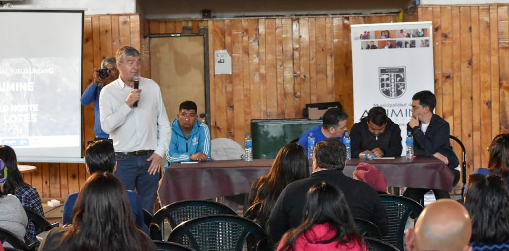 El próximo 17 de octubre iniciarán en Aluminé las obras para generar 145 lotes con servicios. El proyecto incluye redes de agua, electricidad, alumbrado público, gas y obras viales, y se financiará con fondos provinciales y nacionales, a través del Plan Nacional de Suelo Urbano (PNASU).El anuncio fue realizado este miércoles por el intendente Gabriel Álamo, el intendente electo, Diego Victoria, el vicepresidente de la Agencia de Desarrollo Urbano Sustentable (ADUS) y el Instituto Provincial de Vivienda y Urbanismo (IPVU), Ricardo Fernández, y funcionarios, arquitectos e ingenieros del organismo provincial de vivienda.Durante el acto se informó que la empresa adjudicada para ejecutar los trabajos ya recibió el primer anticipo financiero y destacaron que el inicio de las obras coincide con el fin de la veda climática. La iniciativa cuenta con un presupuesto de más de 284 millones de pesos. Desde el IPVU se informó que el objetivo es generar lotes aptos para la posterior construcción de viviendas.El intendente manifestó que «este anuncio es muy importante en la vida institucional de Aluminé, porque entendemos que esta es la manera en que el Estado debe ir creando lotes con los servicios, para que las familias puedan construir sus viviendas, puedan acceder a sus lotes con este programa y una vez asentado tengan calles para acceder, tenga agua, tenga electricidad. Y eso está sucediendo ahora, para nosotros era muy importante encontrarnos con ustedes para contarles todo el proceso que hemos recorrido».Para finalizar destacó que, en este primer programa de Suelo Urbano, «entraron 12 municipios y Aluminé fue el primero que logró la aprobación del proyecto y el primer municipio que iniciará las obras» y luego agradeció a los equipos técnicos del municipio, a los del IPVU y a las autoridades del organismo provincial por el avance.Por su parte el vicepresidente de ADUS-IPVU, Ricardo Fernández, señaló que «es importante que las nuevas autoridades continúen con estás políticas y es fundamental el compromiso del municipio para que nosotros podamos gestionar los recursos provinciales o nacionales para realizar las obras».En ese sentido destacó el rol activo del ejecutivo municipal en la gestión de soluciones habitacionales y recordó que el pasado 25 de septiembre se firmó un convenio con la Secretaría de Integración Socio Urbana (SISU) de la nación, para ejecutar obras de servicios públicos y viales en el barrio Intercultural de Aluminé, que prevé una inversión de más de 625 millones de pesos.