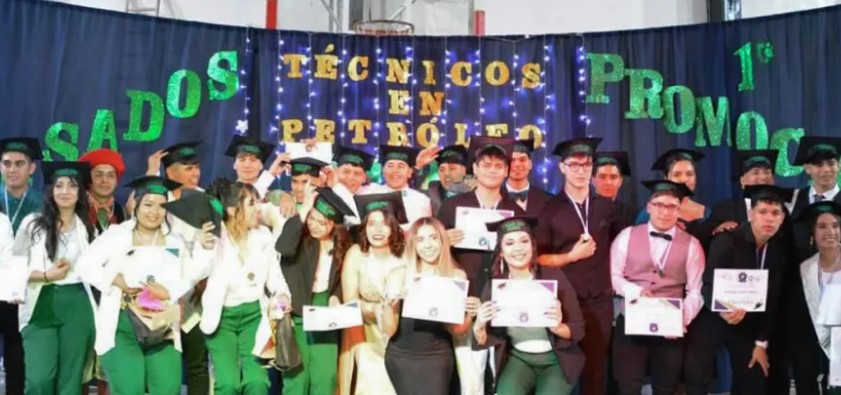 Veintiocho jóvenes que residen en el corazón de Vaca Muerta recibieron el diploma que los acredita como técnicos en Petróleo, durante el acto de colación de la EPET 23 realizado el lunes 9. La institución abrió sus puertas en 2019 con una matrícula de 42 inscriptos y en la actualidad cuenta con 380 estudiantes.