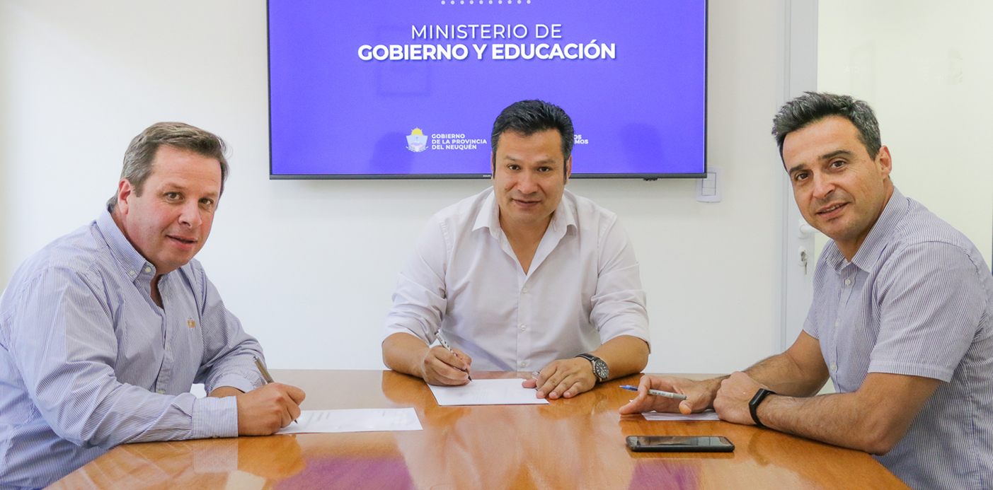 El ministro de Gobierno y Educación, Osvaldo Llancafilo y la presidenta del Consejo Provincial de Educación (CPE), Ruth Flutsch rubricaron hoy con el intendente Fabio Stefani y el secretario de Economía, Javier de los Ríos, el acuerdo que permite avanzar con las tareas programadas.