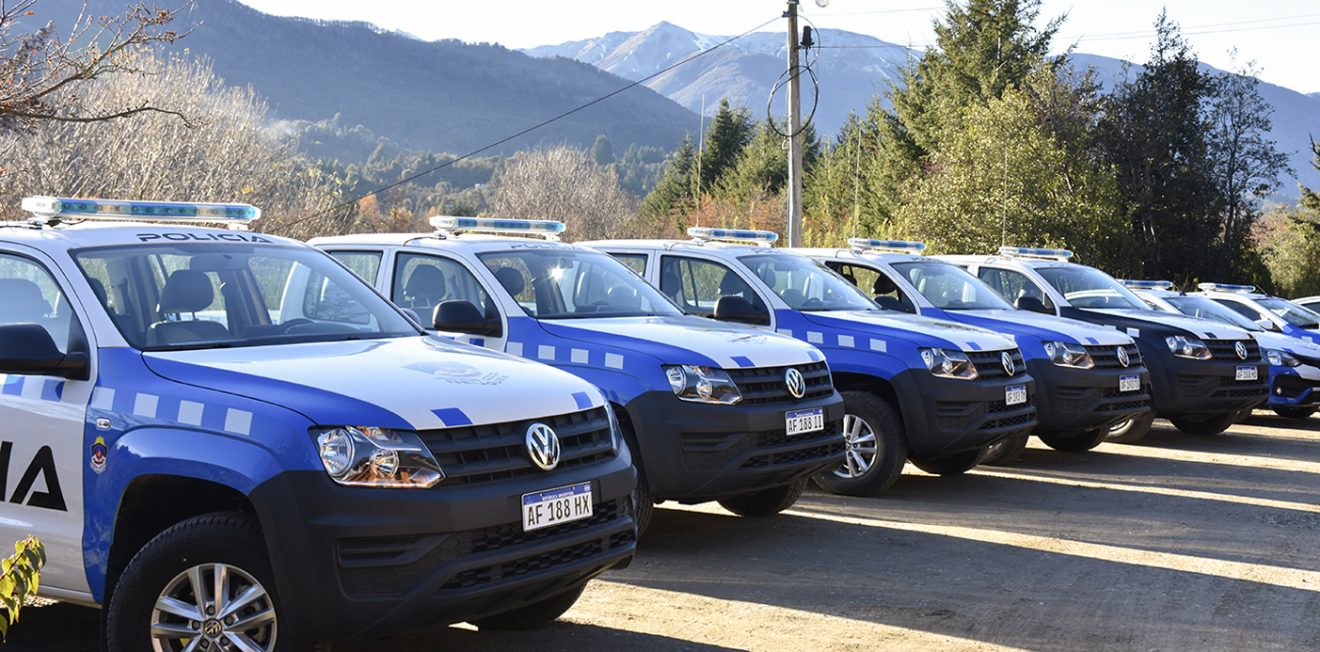 La entrega trata de dos camionetas Amarok y dos automóviles Ethios que forman parte de la flota automotriz de 8 móviles que fueron presentados y entregados durante la mañana en Villa La Angostura, con destino a distintas unidades policiales de la zona sur provincial.
