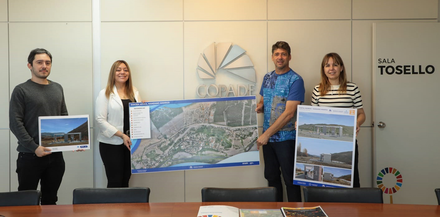 El secretario de Estado de COPADE, Pablo Gutiérrez Colantuono y la coordinadora del área, Silvia García Garaygorta entregaron este jueves a la presidenta de la comisión de fomento de Manzano Amargo, Malvina Antiñir, un documento resultante de la etapa diagnóstica del Plan de Ordenamiento de esta localidad.