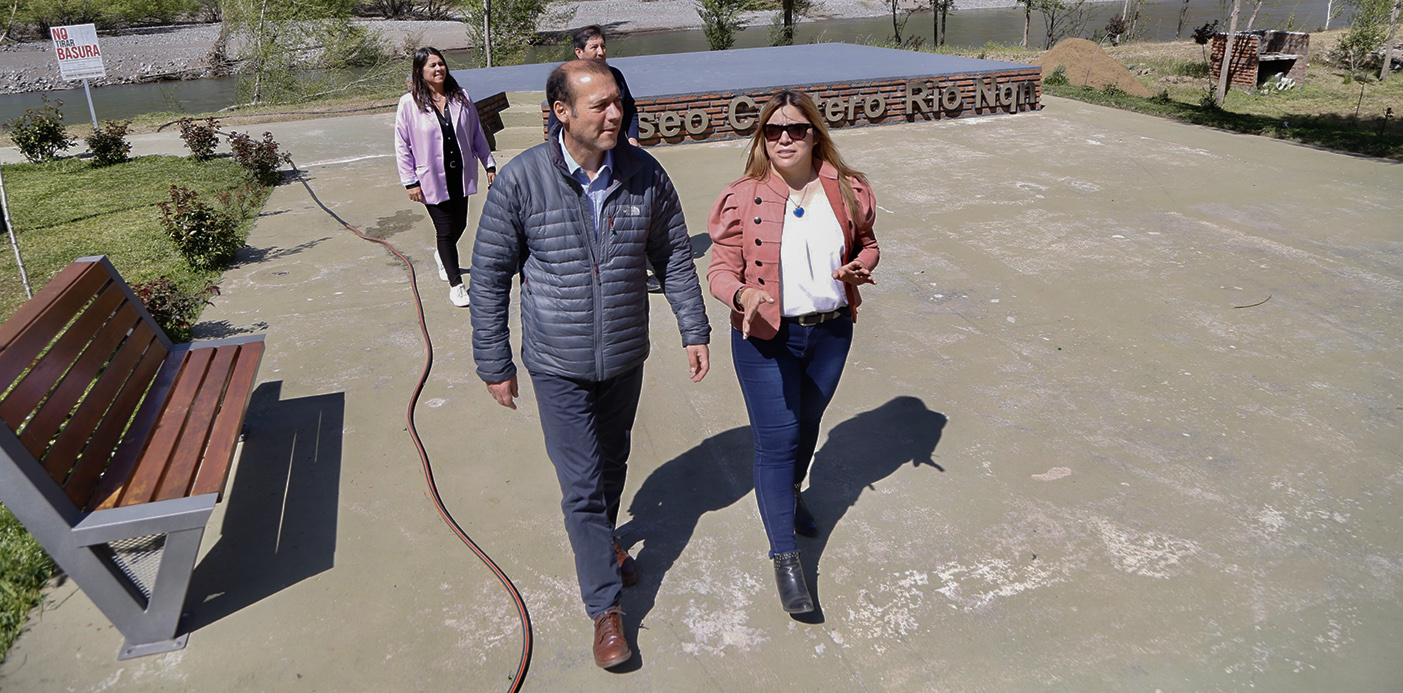El gobernador Omar Gutiérrez y la presidenta de la Comisión de Fomento de Manzano Amargo, Malvina Antiñir, inauguraron el Parque Costero Río Neuquén de la localidad. La obra demandó una inversión de 51.500.000 pesos a través de aportes provinciales.