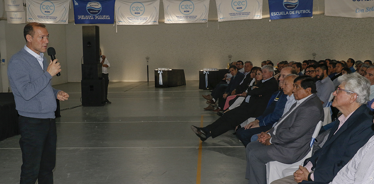 El gobernador Omar Gutiérrez participó esta tarde del acto de asunción de la nueva comisión directiva del Centro de Empleados de Comercio (CEC) de Neuquén. La ceremonia se desarrolló en el predio recreativo que el sindicato posee en Plottier.