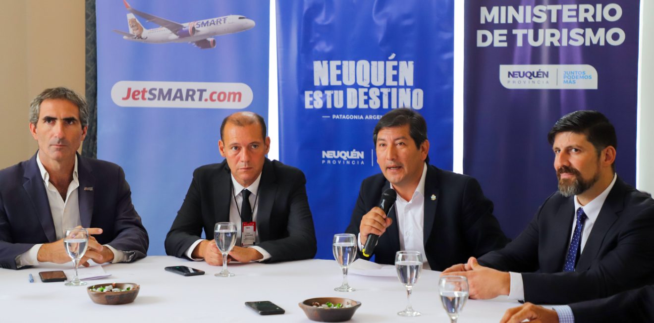 «Gracias a la empresa JetSMART que analizó y aprobó la ruta para volar al destino. Hoy podemos concretar un trabajo que se viene realizando hace muchísimo tiempo junto al sector privado, a NeuquénTur y el Ministerio de Turismo de la Provincia del Neuquén. Un trabajo que hace que hoy podamos estar anunciando en principio estas tres frecuencias que se van a concretar a partir del día 3 de julio», añadió.