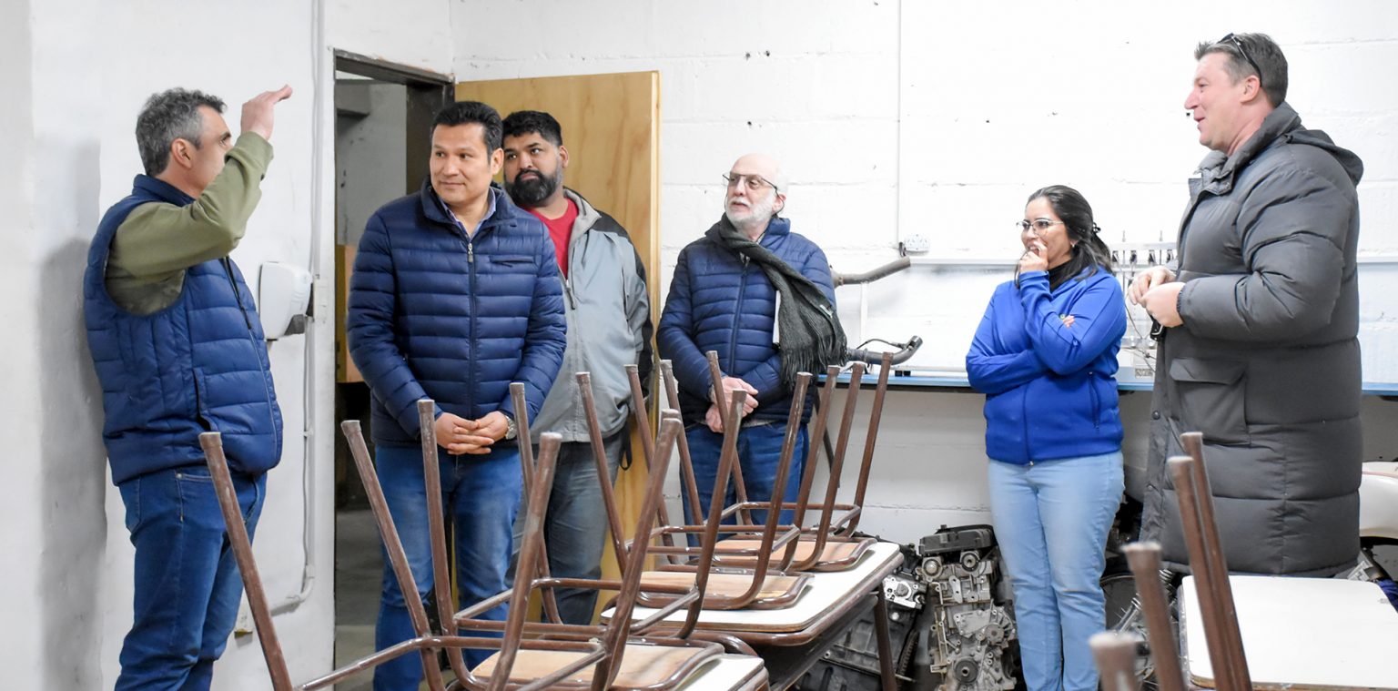 Participaron de la visita el director Provincial de Educación Técnica, Oscar Frassone; el director del establecimiento Pablo Ricciardi, la vicedirectora Noelia Lantaño; y los equipos técnicos de Mantenimiento Escolar y Área Técnica Provincial.
