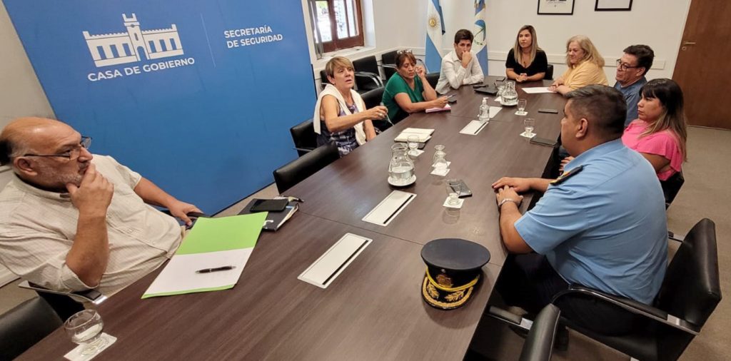 La secretaria de Seguridad, Marianina Dominguez, encabezó una reunión de trabajo con autoridades de Policía, donde también participaron el subsecretario de Seguridad, Lucas Gómez, y el subsecretario de Defensa Civil, Martín Giusti.