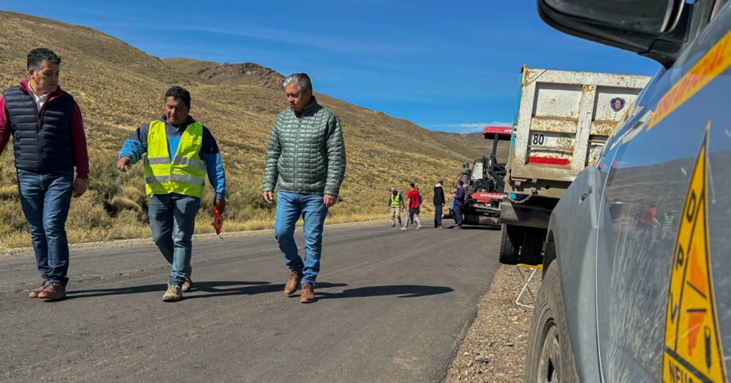 El gobernador, Rolando Figueroa, el presidente de Vialidad Provincial, José Dutsch, y el diputado provincial, Gabriel Álamo, realizaron una recorrida por la zona donde se reiniciaron los trabajos de repavimentación de las rutas provinciales 23 y 46, en Aluminé. Garantizaron que las obras tendrán continuidad tras la veda climática del invierno.