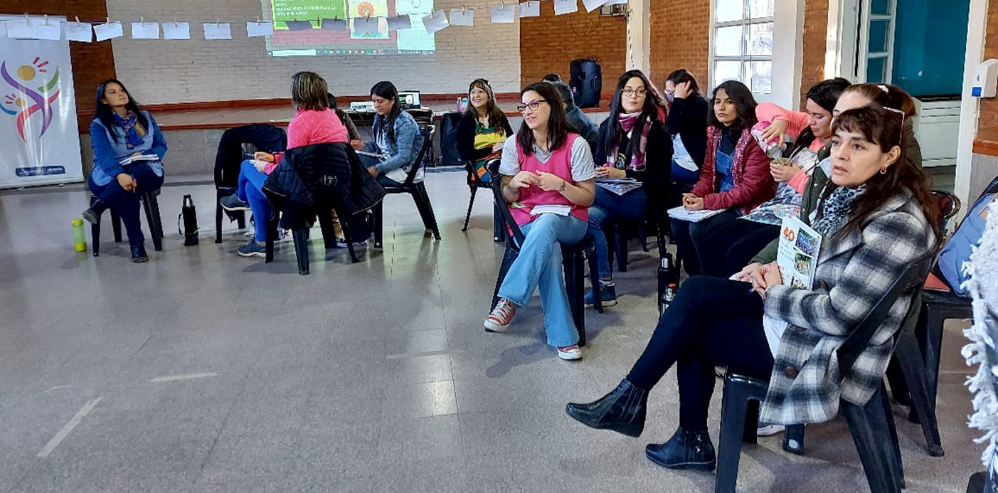 De la mano de actividades lúdicas que buscan fomentar el intercambio de experiencias y la puesta en común de los desafíos en la labor cotidiana al frente del aula, la jornada se trabajó desde el enfoque de las niñeces como sujetos de derechos y en relación con dos ejes: las violencias que ejercen las personas adultas contra las niñeces y los maltratos y acoso entre las niñas y niños.