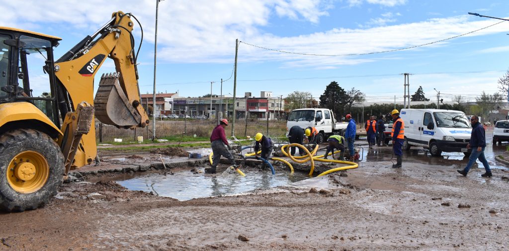 Desde la mañana del jueves, una cuadrilla técnico – operativa se encuentra trabajando en el lugar, en principio para poder acceder a la cañería, y determinar el tipo de reparación que se deberá hacer. Para poder realizar estas maniobras se deben cerrar válvulas de distribución en las cisternas que abastecen a los barrios: El Progreso, Unión de Mayo, Gregorio Álvarez, Militar, Valentina Sur, Canal 5, La Sirena y Huiliches.