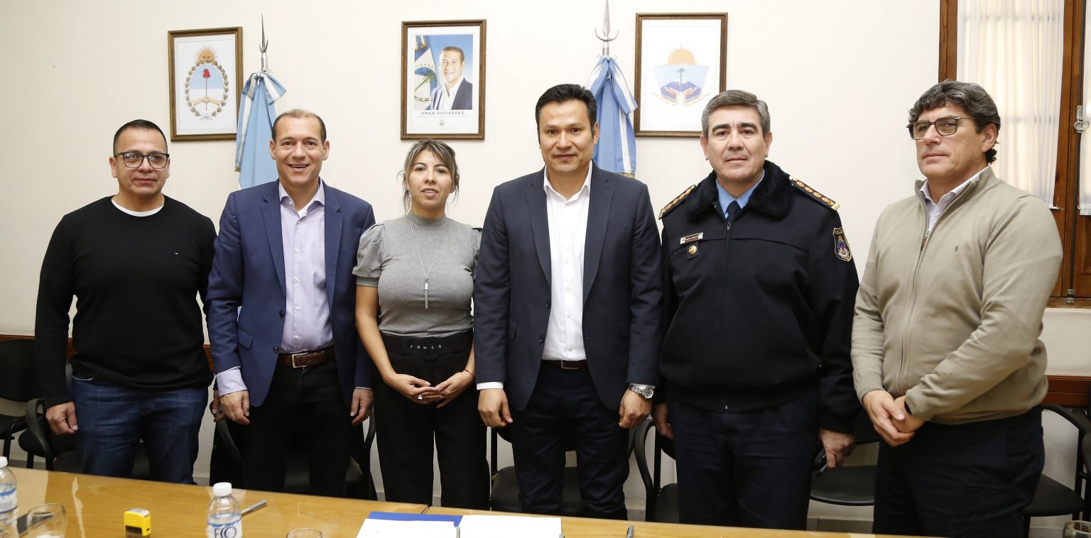 El acuerdo también lo suscribieron el ministro de Gobierno y Educación, Osvaldo Llancafilo; el jefe de la Policía, Julio Peralta; la presidenta del Concejo Deliberante de Rincón de los Sauces, Daniela Rucci -en representación del municipio-; y el responsable de Neutics Sapem, Carlos Aguilar.