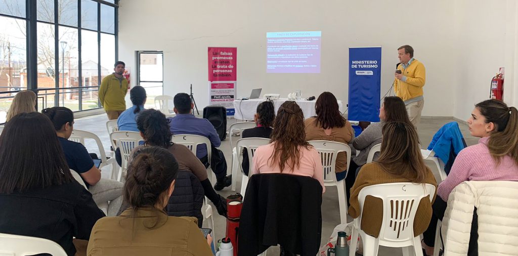 El ministerio de Turismo junto a la subsecretaría de las Mujeres del ministerio de las Mujeres y Diversidad, brindaron un taller de Sensibilización para la prevención de trata de personas destinado al sector turístico de Añelo.El objetivo del taller fue sensibilizar al personal que tiene la responsabilidad de desarrollar funciones en áreas del sector turístico público y privado de la localidad y brindar herramientas e indicadores de detección temprana en la temática, como así también los mecanismos estatales de intervención.La actividad se realizó como parte de la Comisión Interinstitucional de Intervención contra la Trata de Personas, de la cual el ministerio de Turismo forma parte y en la que confluyen diferentes organismos e instituciones provinciales con el objetivo de coordinar tareas de prevención, asistencia a las víctimas y persecución del delito de trata de personas en todas sus modalidades.Asistieron al encuentro, la secretaria de Turismo y Cultura local, Luciana Guzmán, informantes y guías del Museo del Desierto Patagónico, representantes del área municipal de Niñez Adolescencia y Familia y personal de Policía, entre otros.La trata de personas es un flagelo que atraviesa a todos los sectores de la sociedad. El turismo como actividad económica y social no es ajeno a esta realidad y es por esto que quienes trabajan en el sector constituyen una pieza clave para detectar, prevenir y colaborar con su erradicación desde sus ámbitos laborales tanto públicos como privados.